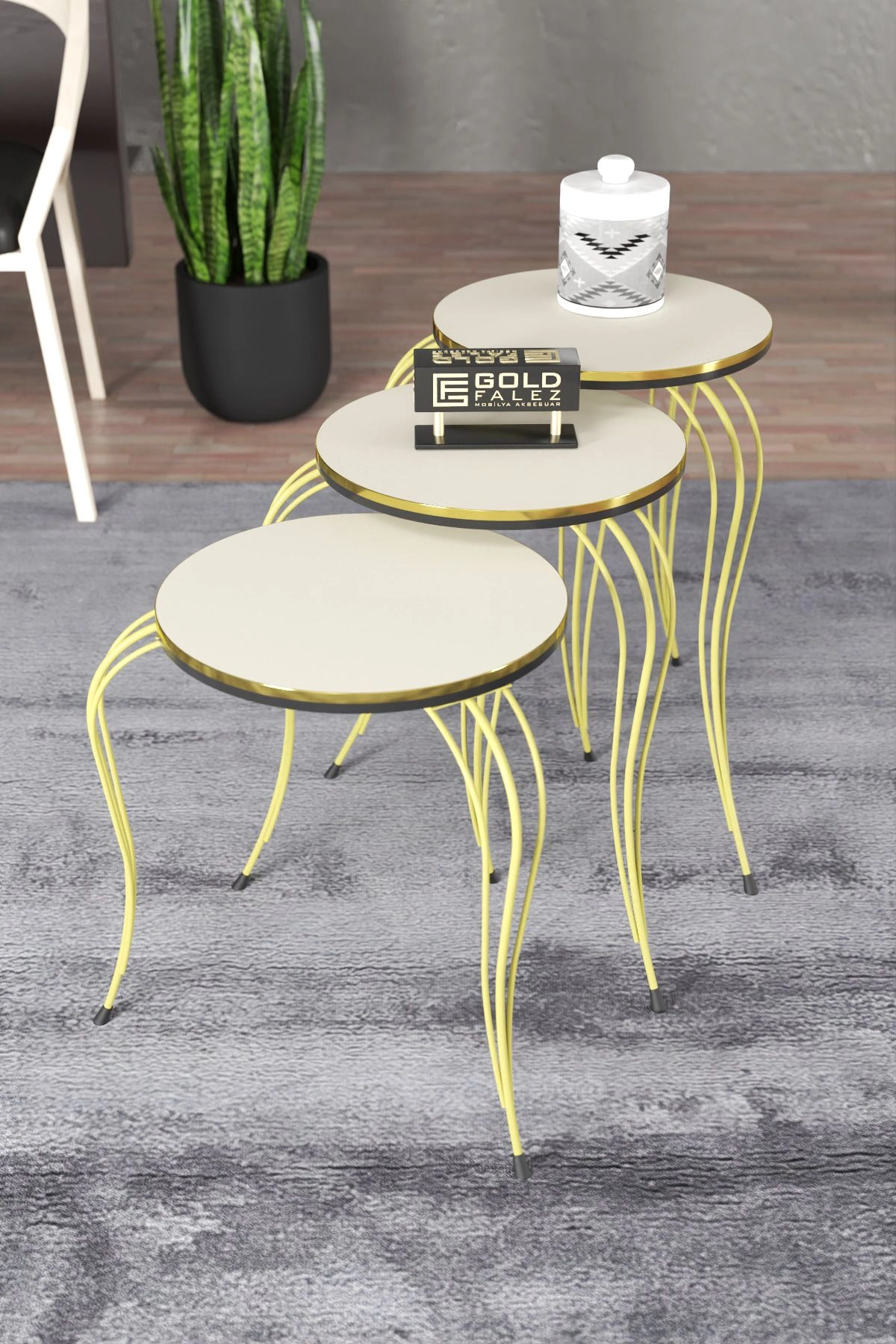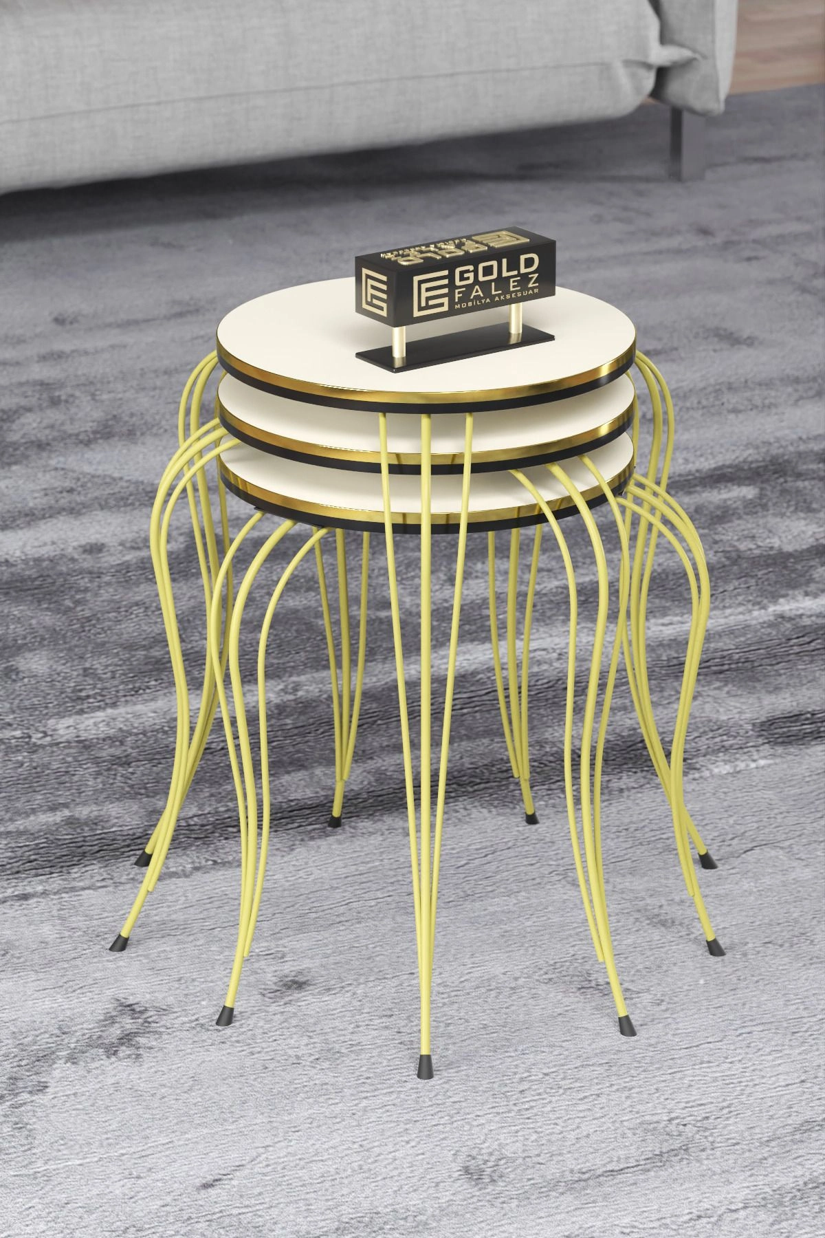 ZİGON SEHPA LÜKENS ÇİFT GOLD KREM