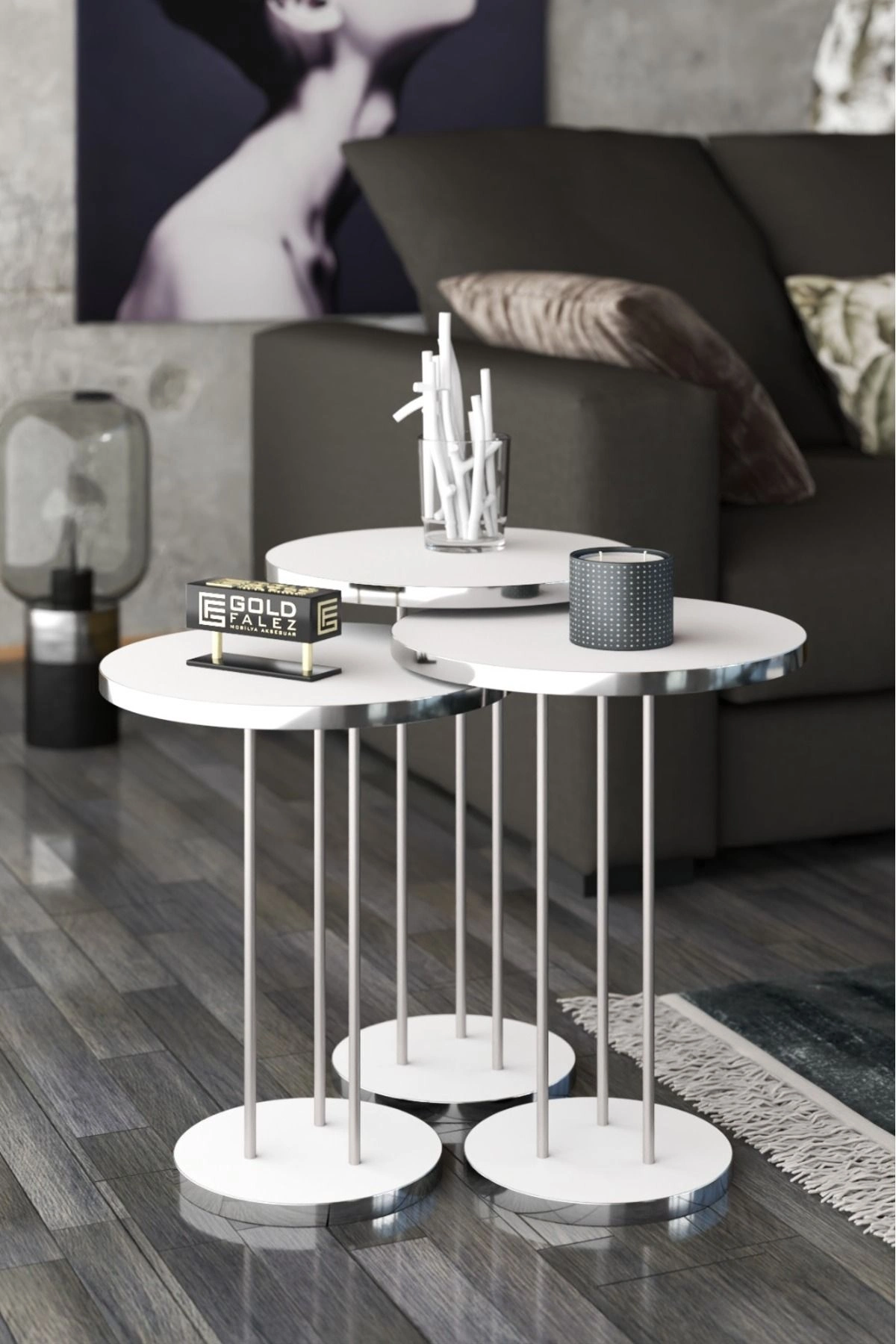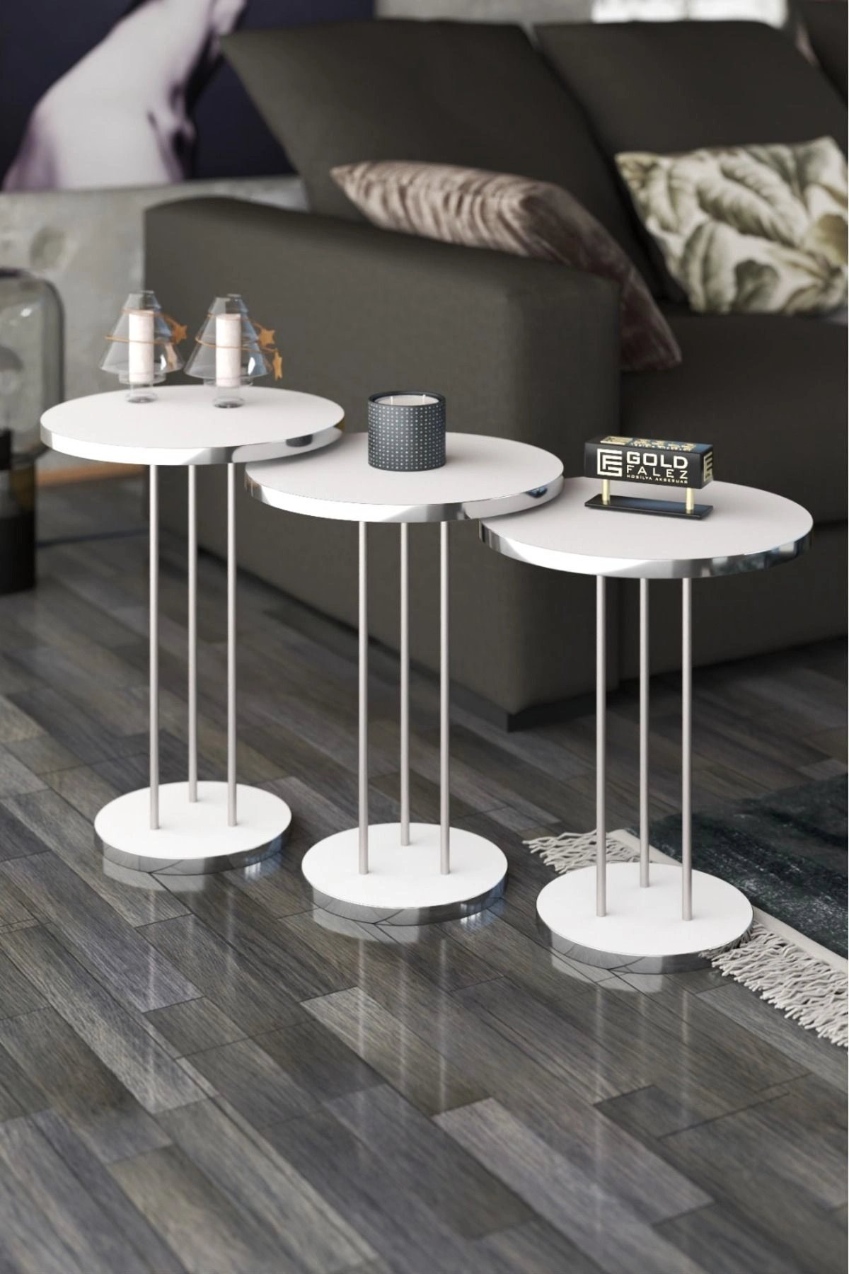 Zigon Sehpa Terra Gümüş Beyaz