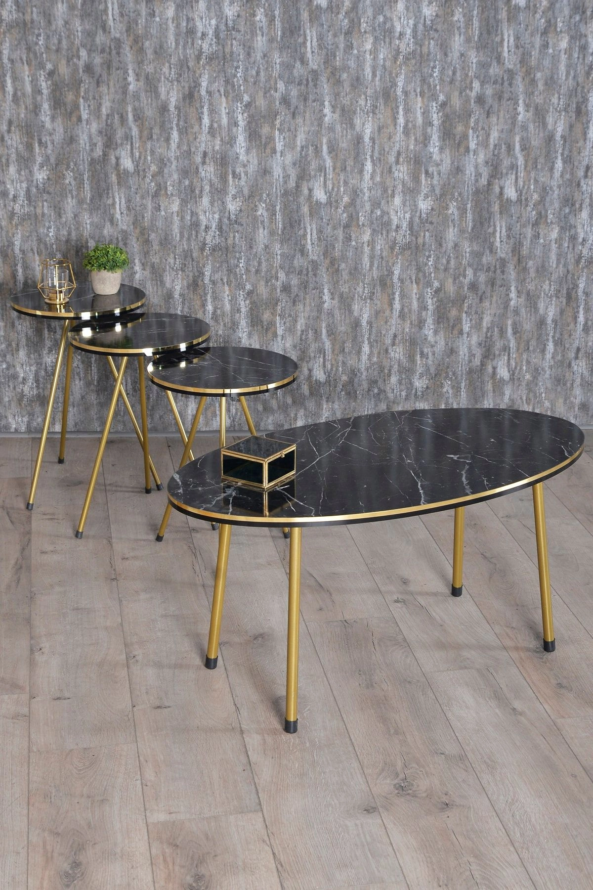 Zigon Sehpa Ve Orta Sehpa Elips Set Çift Gold Bendir Metal