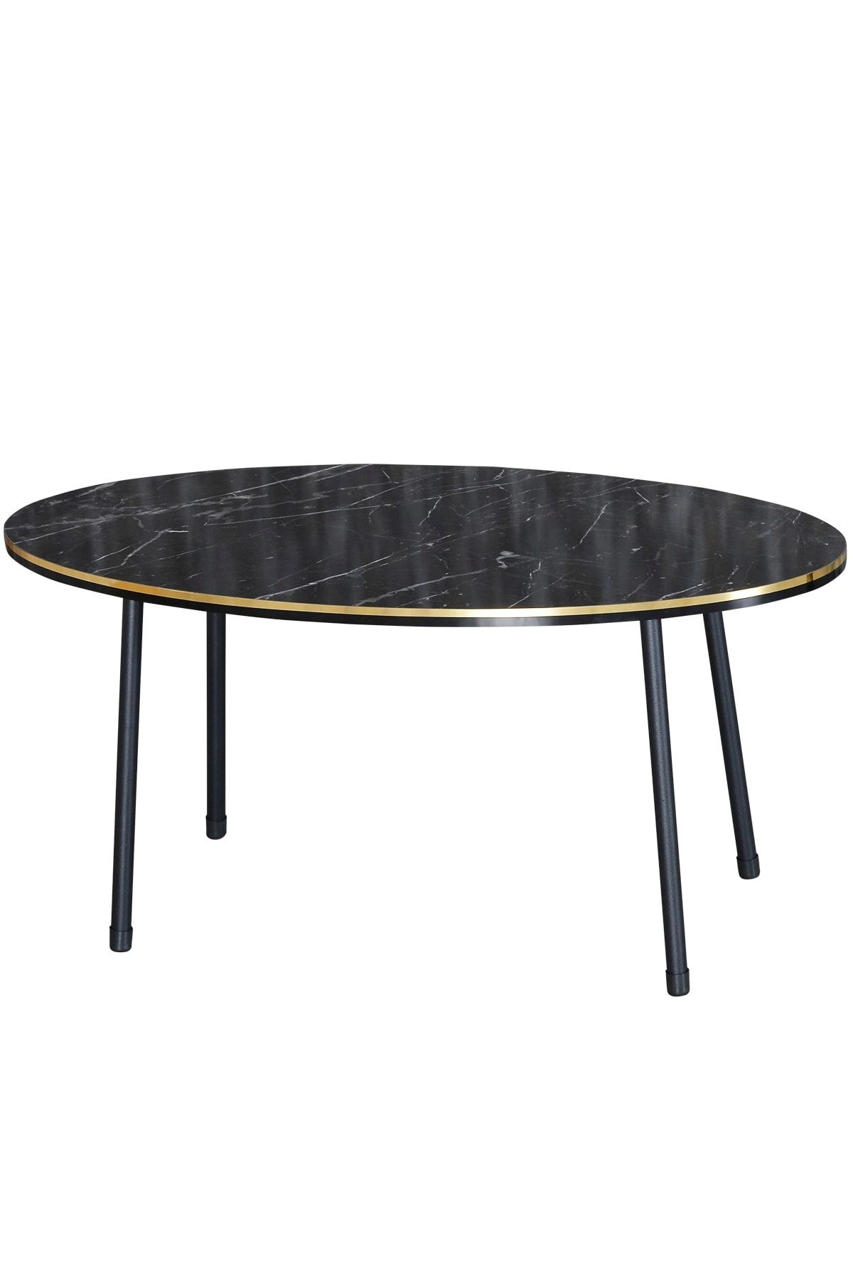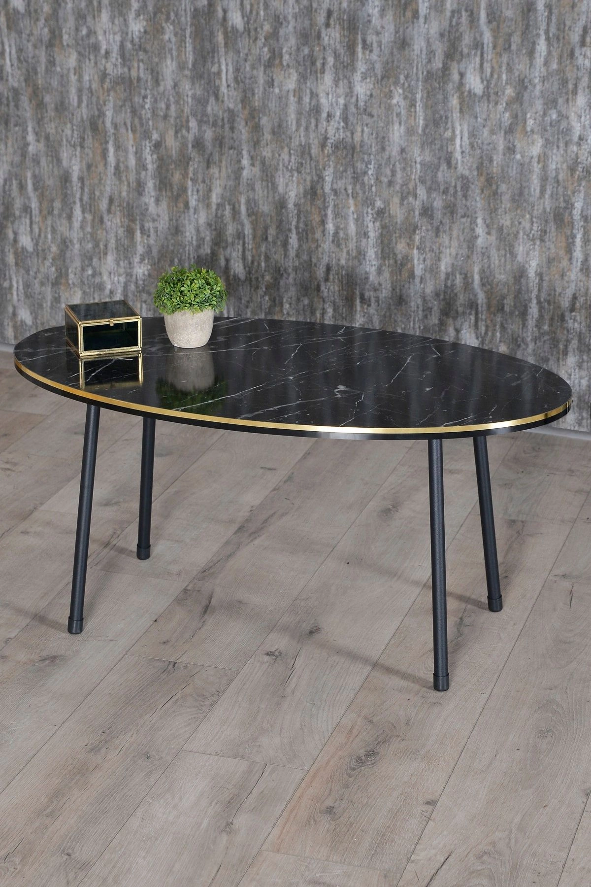 Zigon Sehpa Ve Orta Sehpa Elips Set Siyah Metal Ayak Çift Altın Bendir