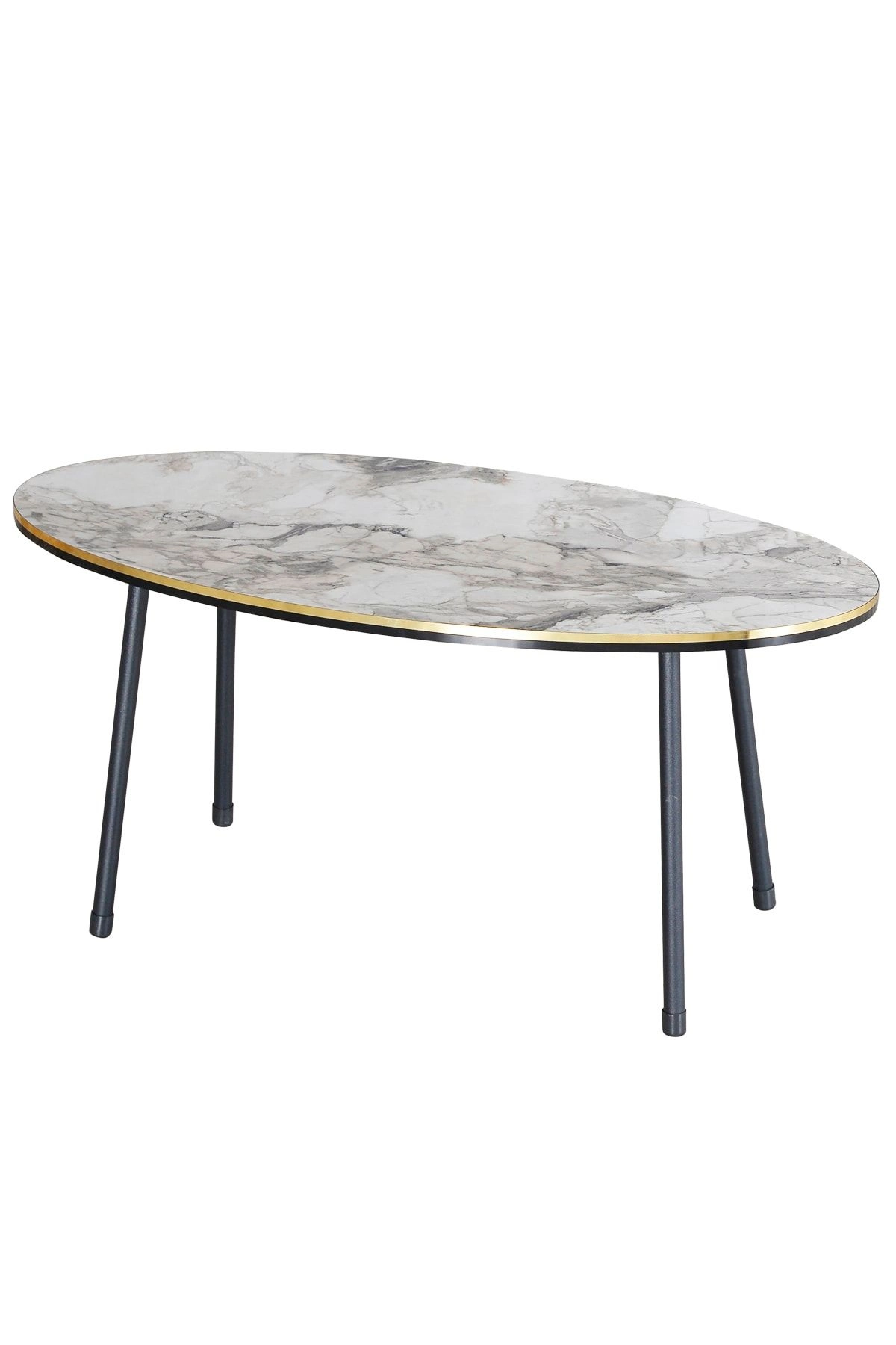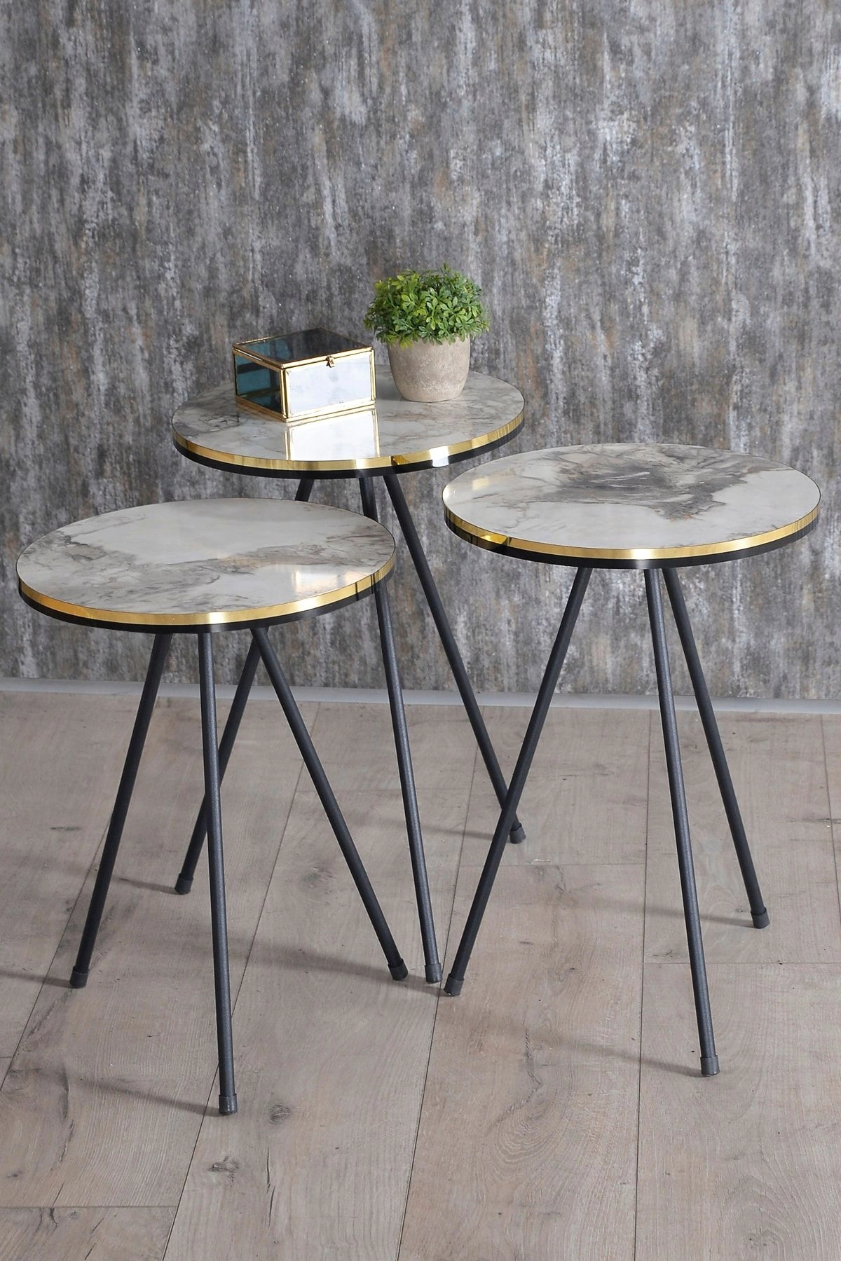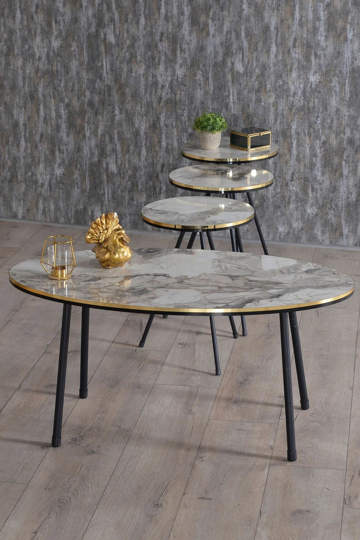 Zigon Sehpa Ve Orta Sehpa Elips Set Siyah Metal Ayak Çift Altın Efes