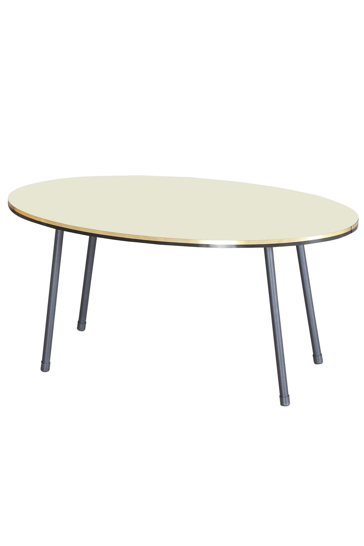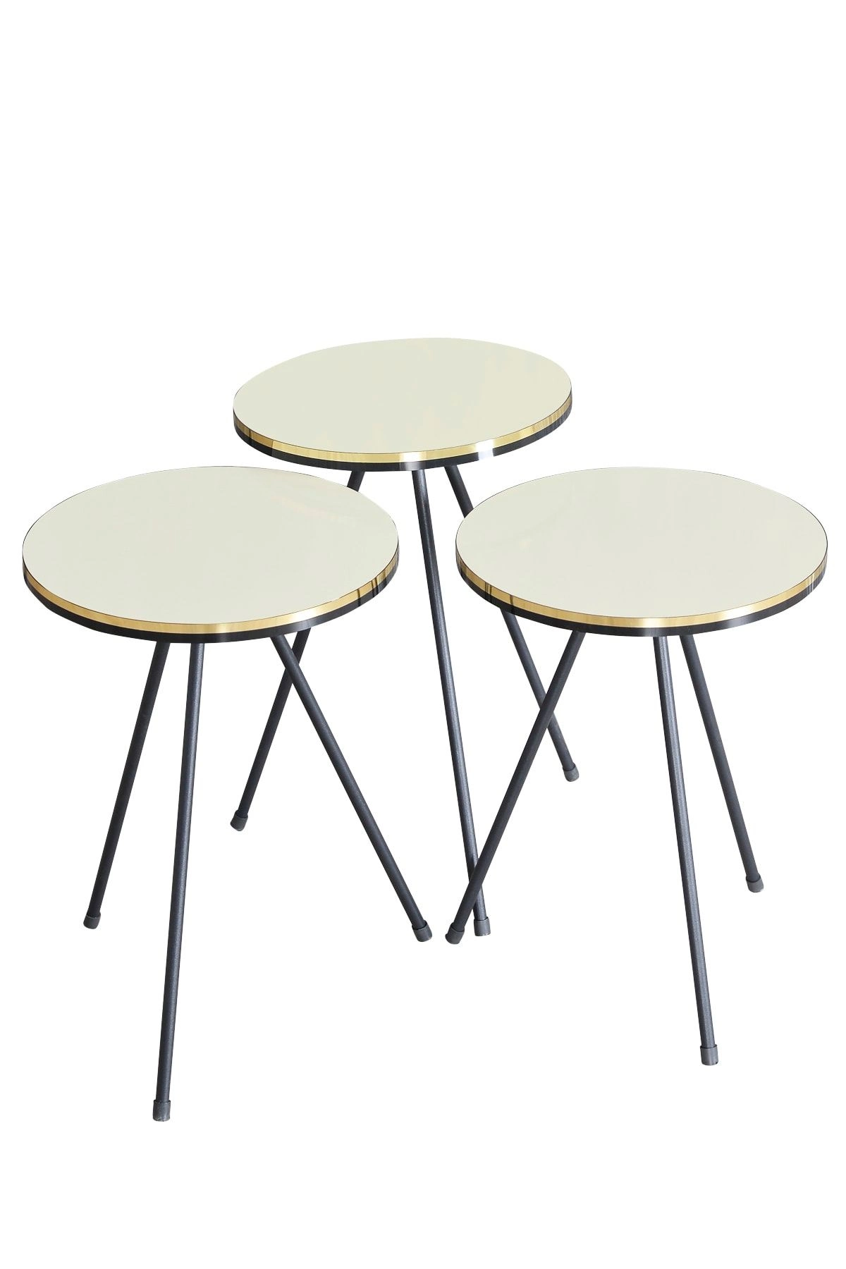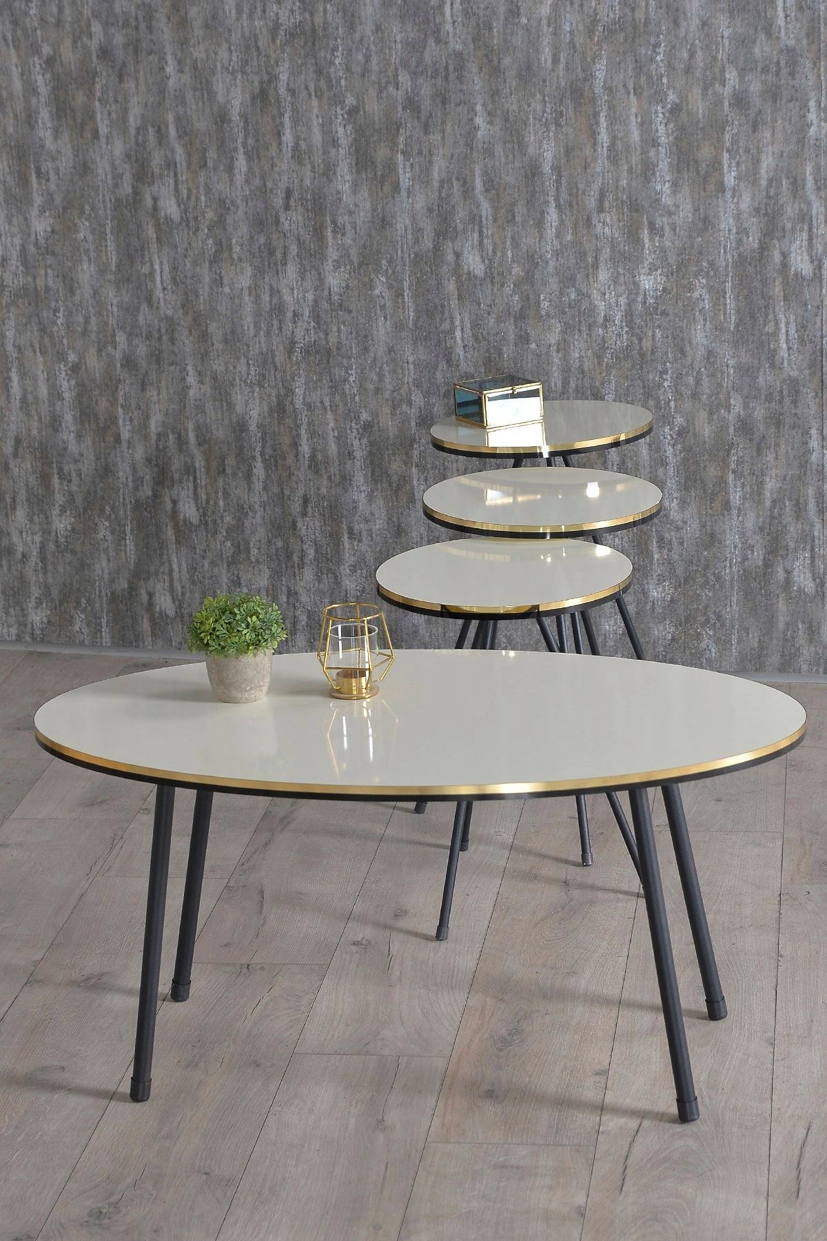 Zigon Sehpa Ve Orta Sehpa Elips Set Siyah Metal Ayak Çift Altın Krem