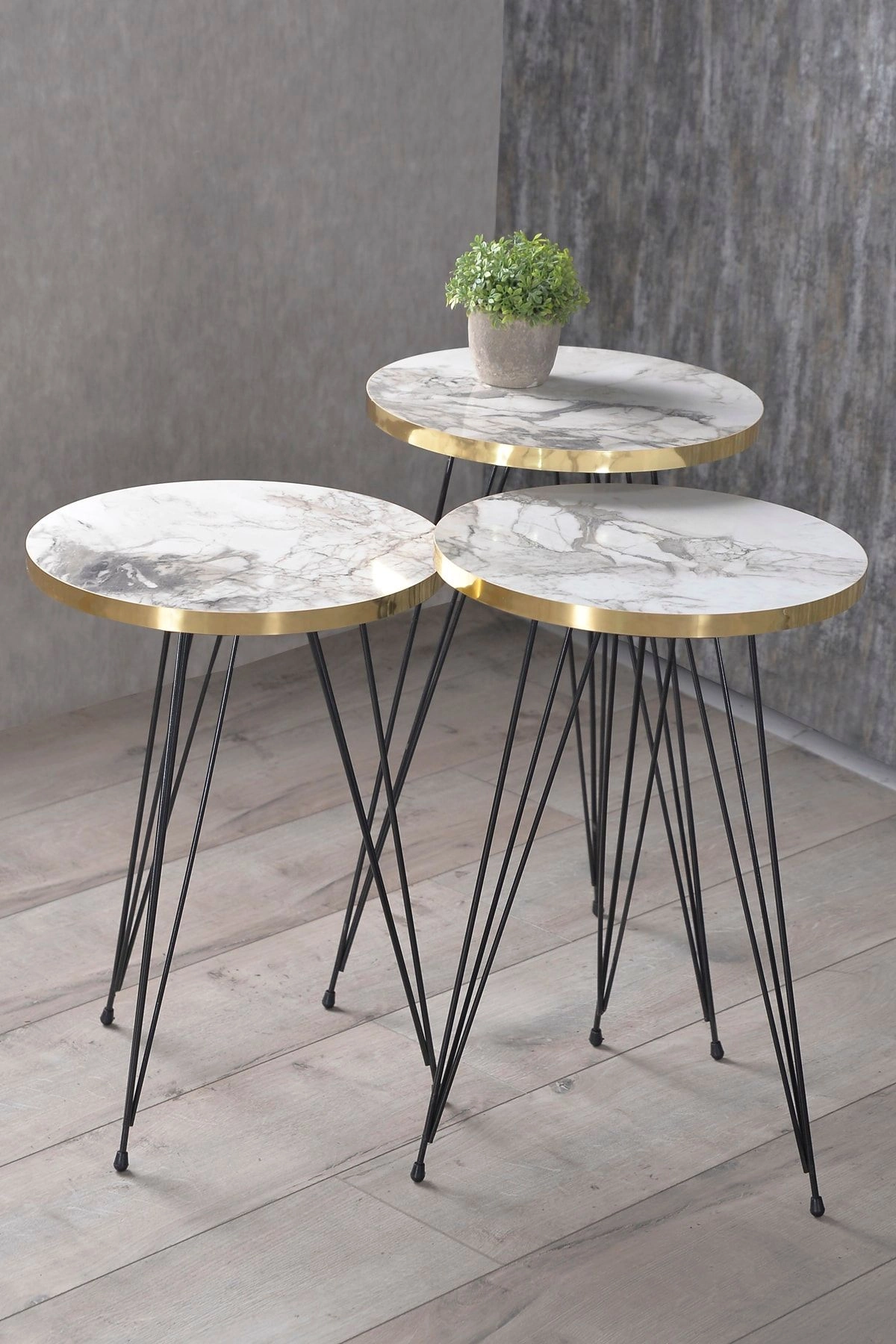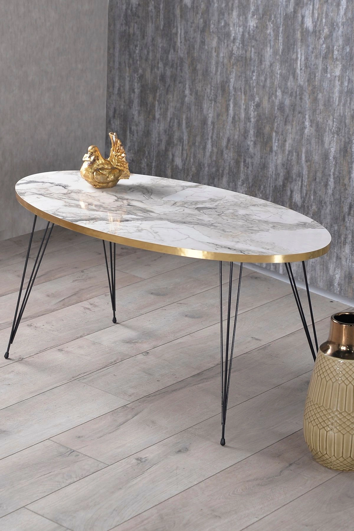 Zigon Sehpa Ve Orta Sehpa Elips Set Siyah Tel Ayak Altın Efes