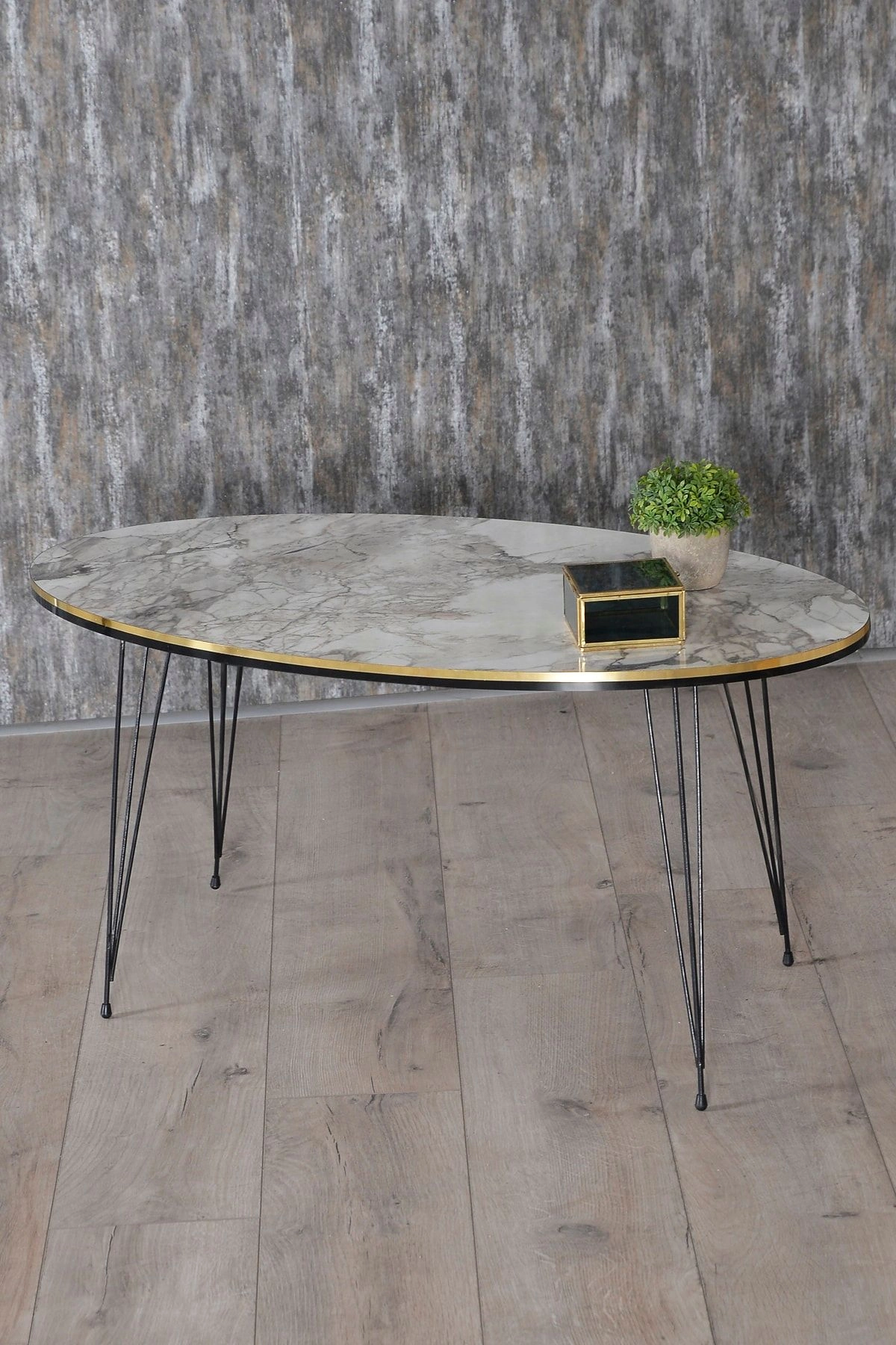 Zigon Sehpa Ve Orta Sehpa Elips Set Siyah Tel Ayak Çift Altın Efes