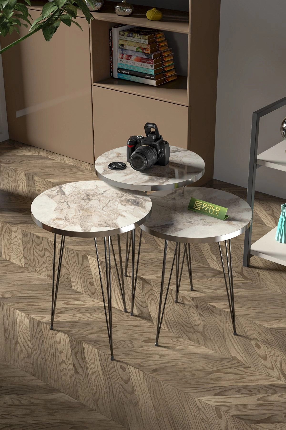 Zigon Sehpa Ve Orta Sehpa Elips Set Siyah Tel Ayak Gümüş Efes