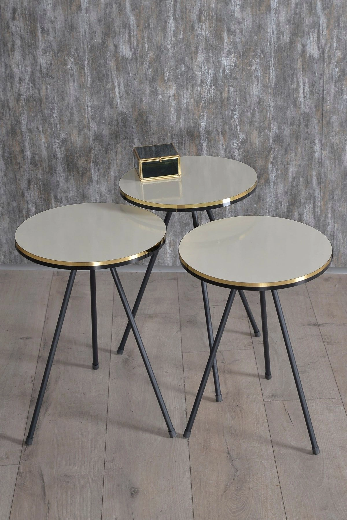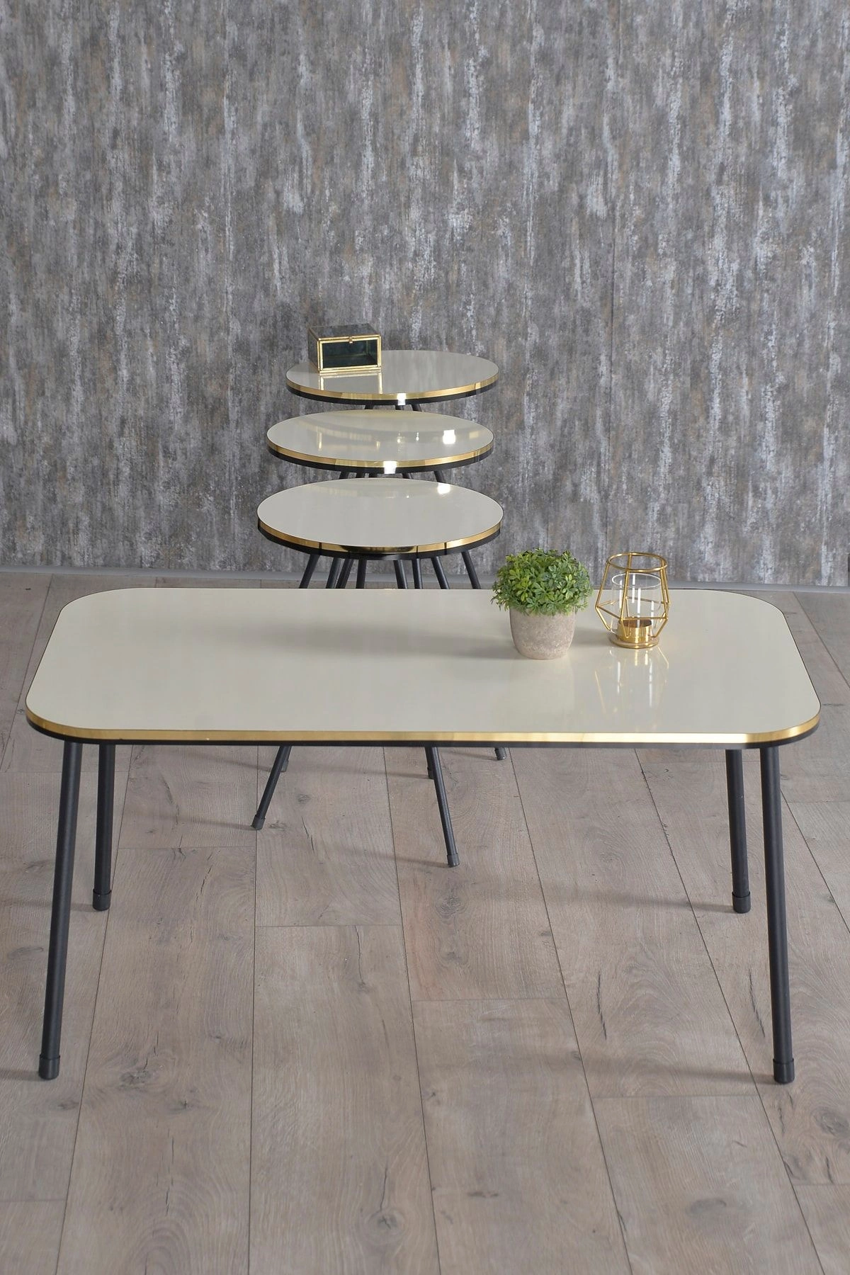 Zigon Sehpa Ve Orta Sehpa Kr Set Siyah Metal Ayak Çift Altın Krem