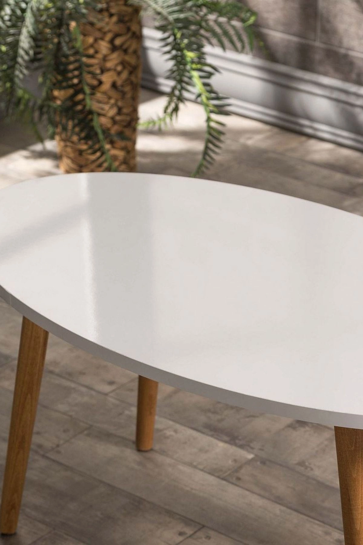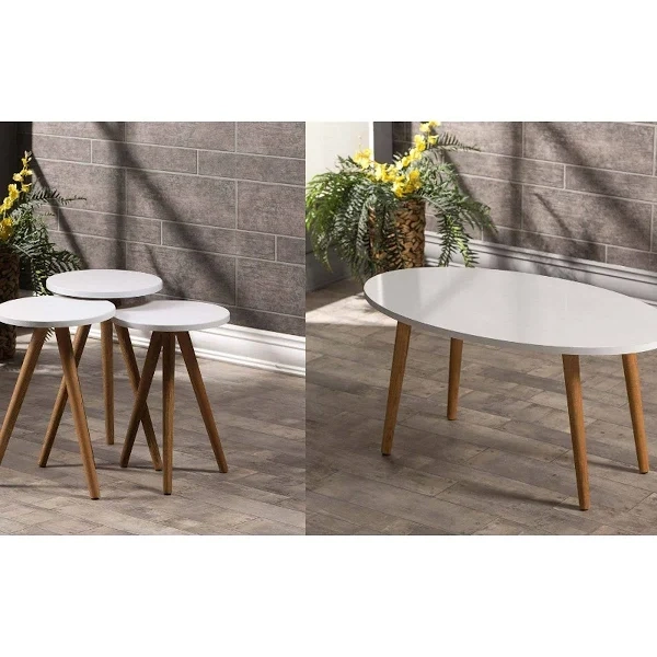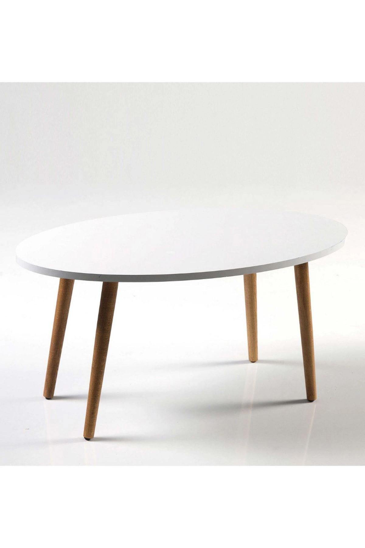 Zigon Sehpa Ve Orta Sehpa Set Ahşap Torna Elips Beyaz