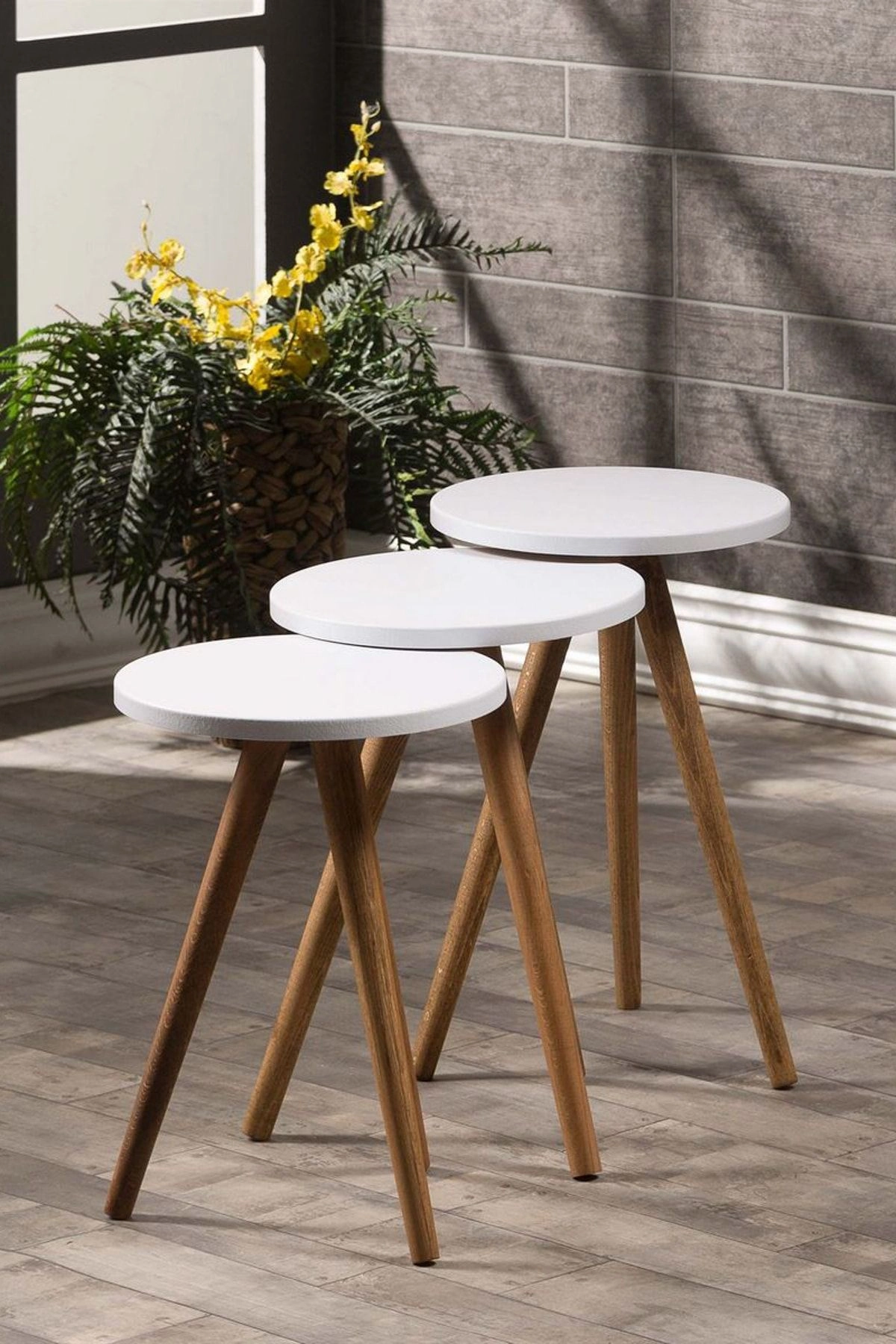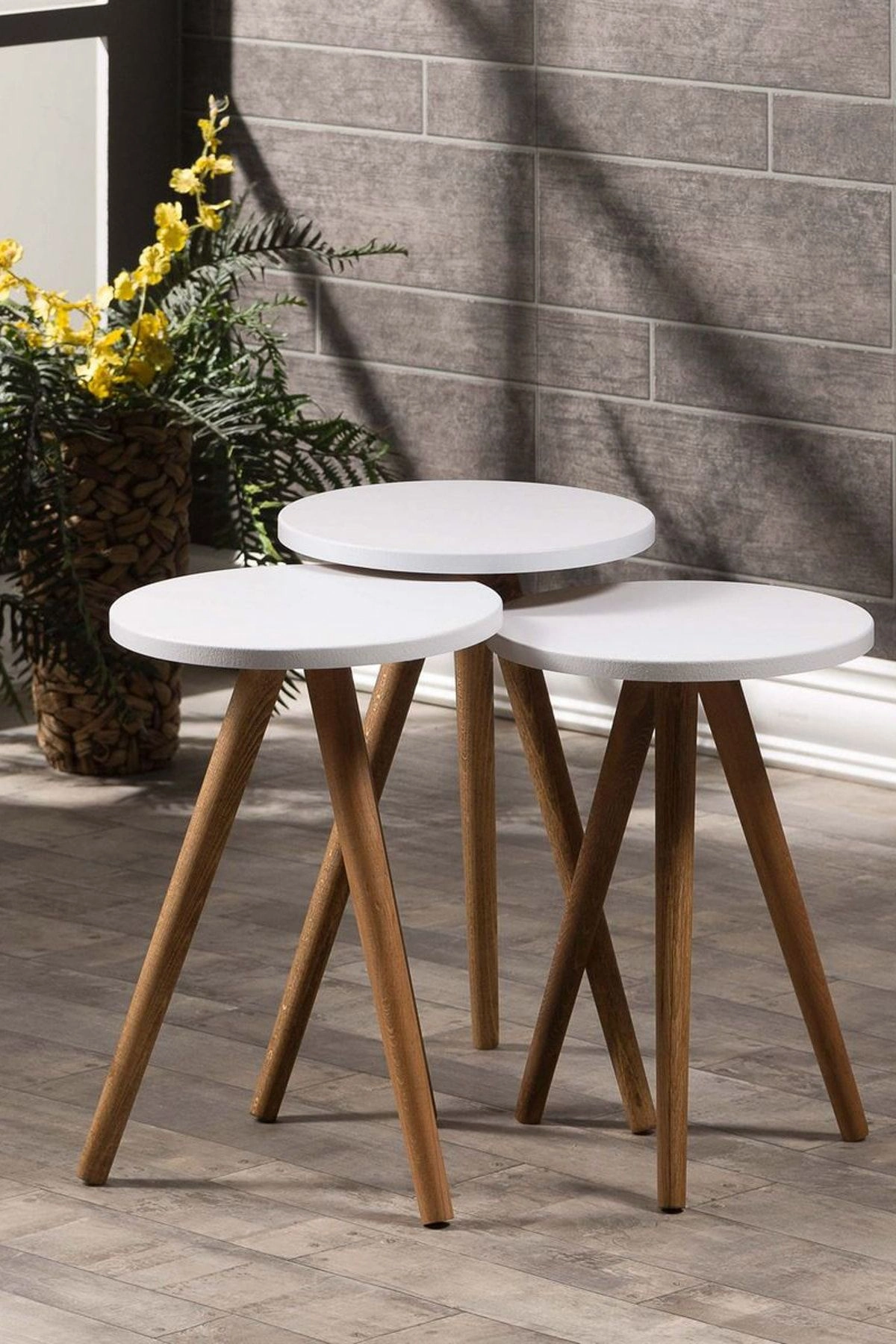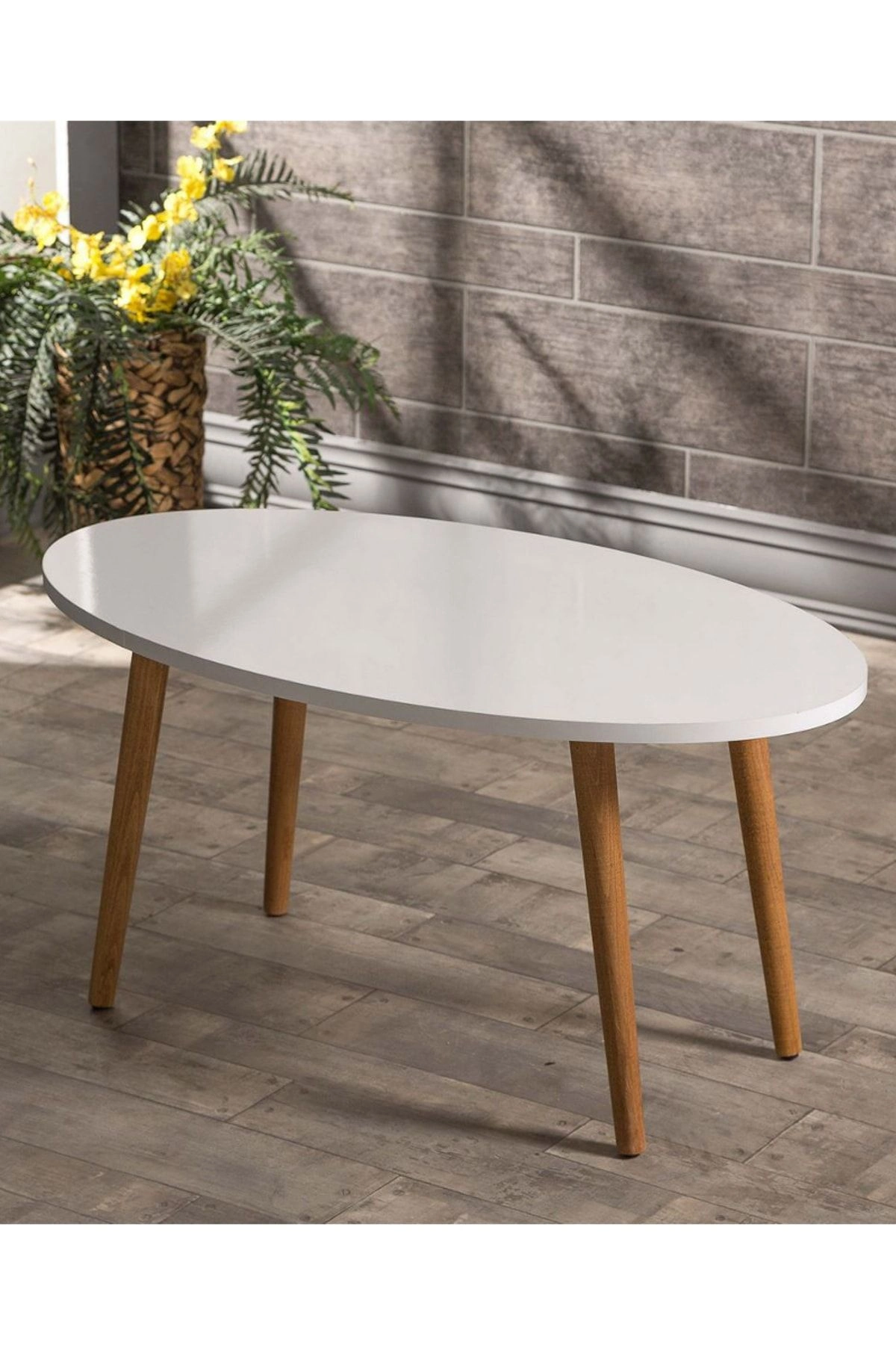 Zigon Sehpa Ve Orta Sehpa Set Ahşap Torna Elips Beyaz