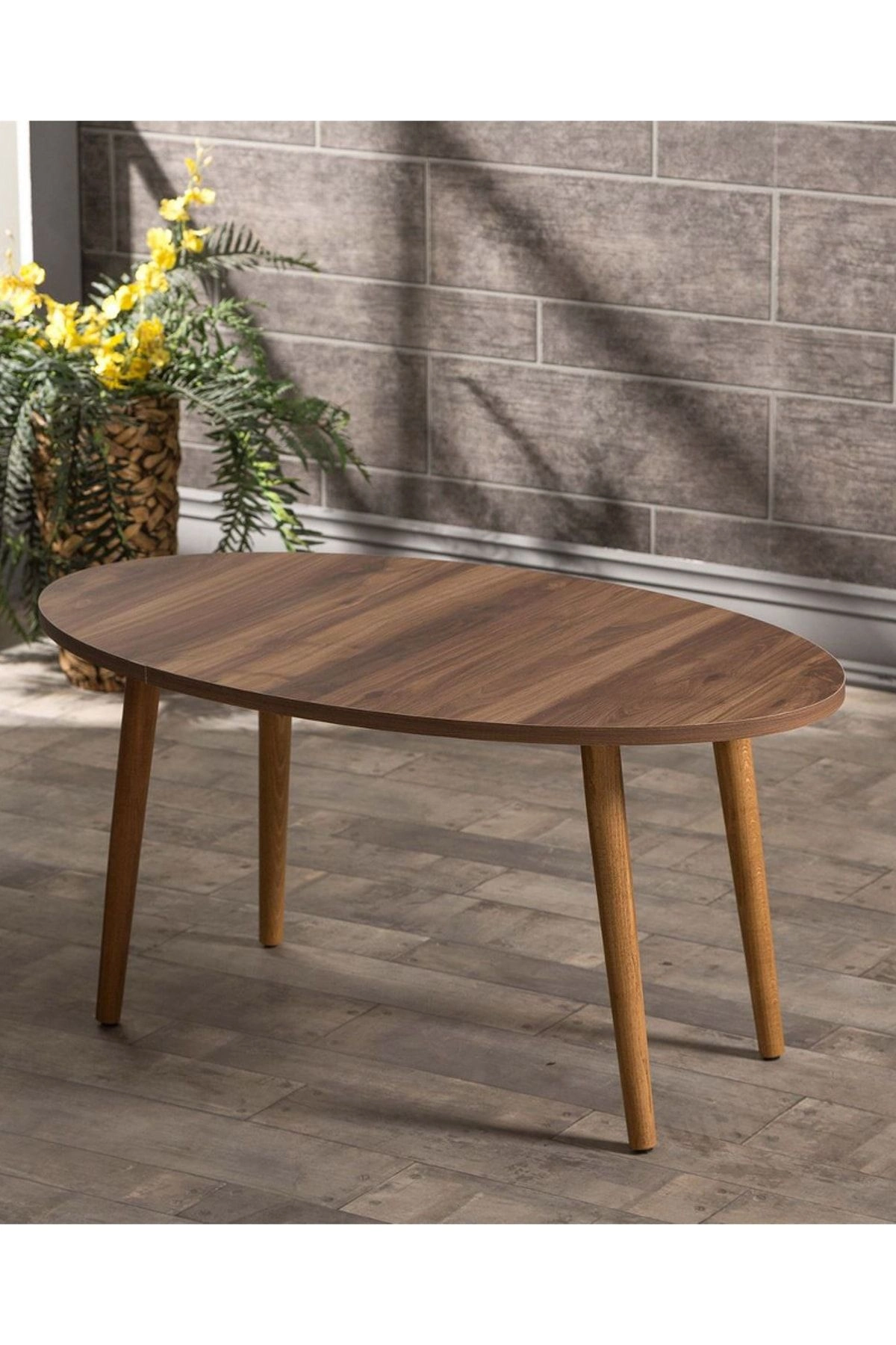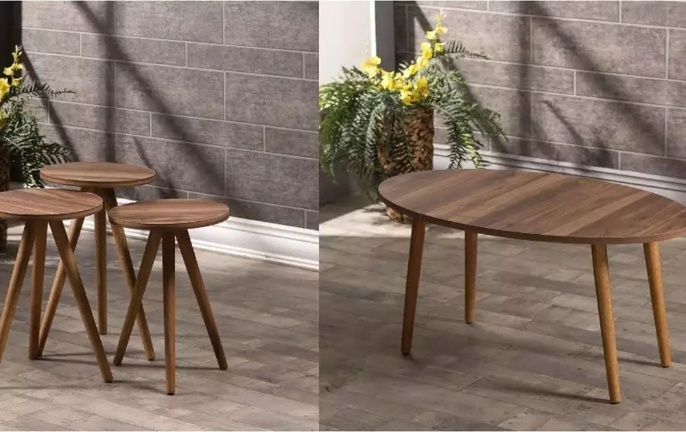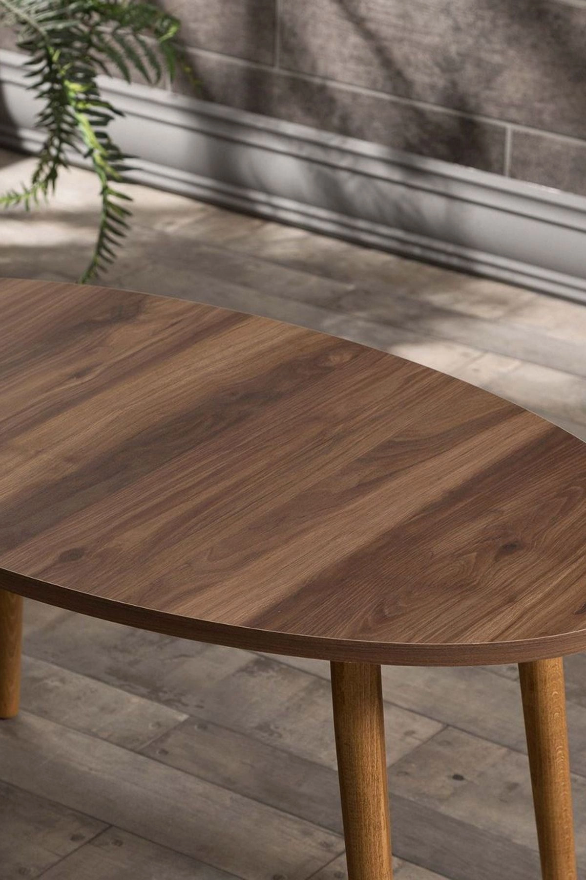 Zigon Sehpa Ve Orta Sehpa Set Ahşap Torna Elips Ceviz