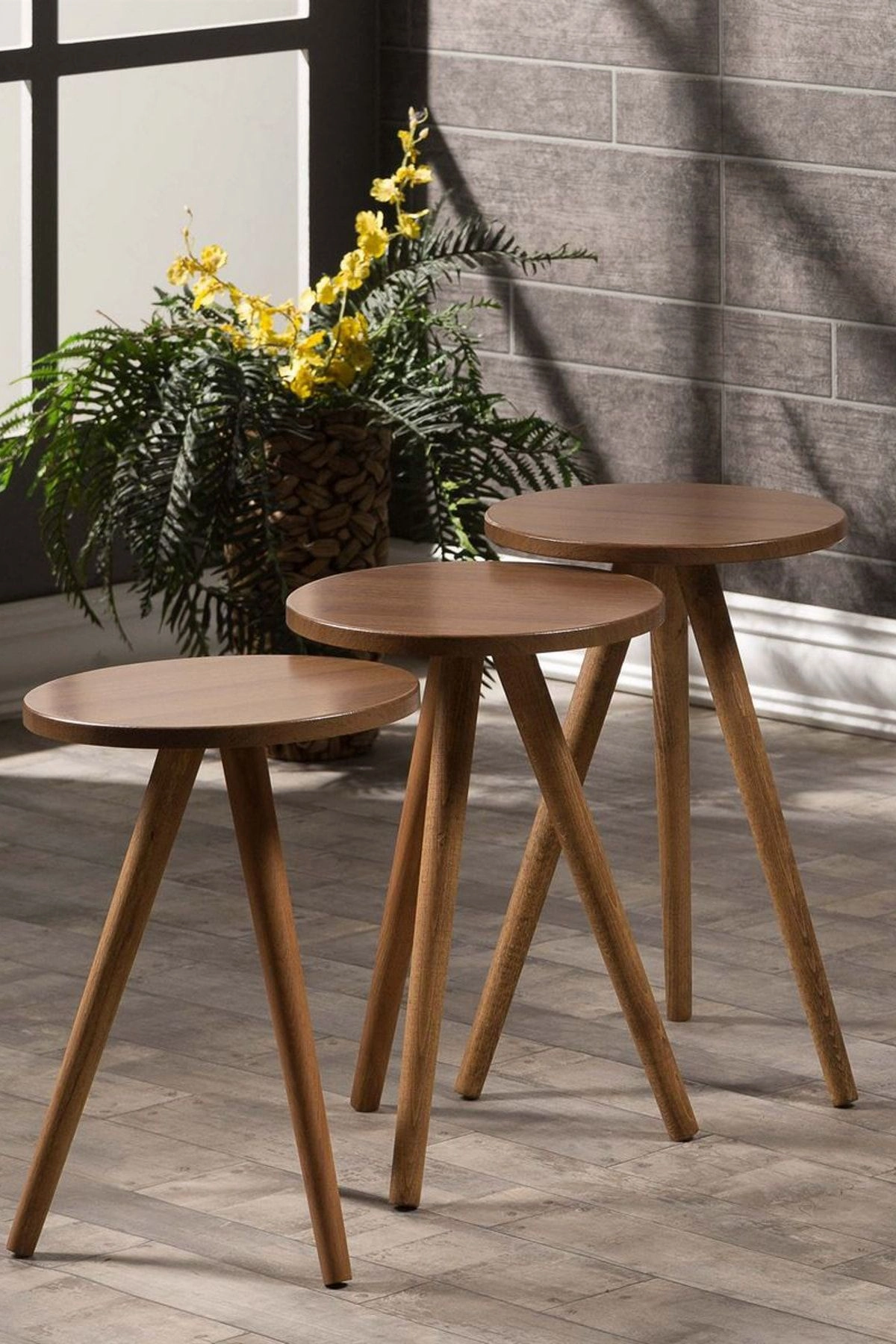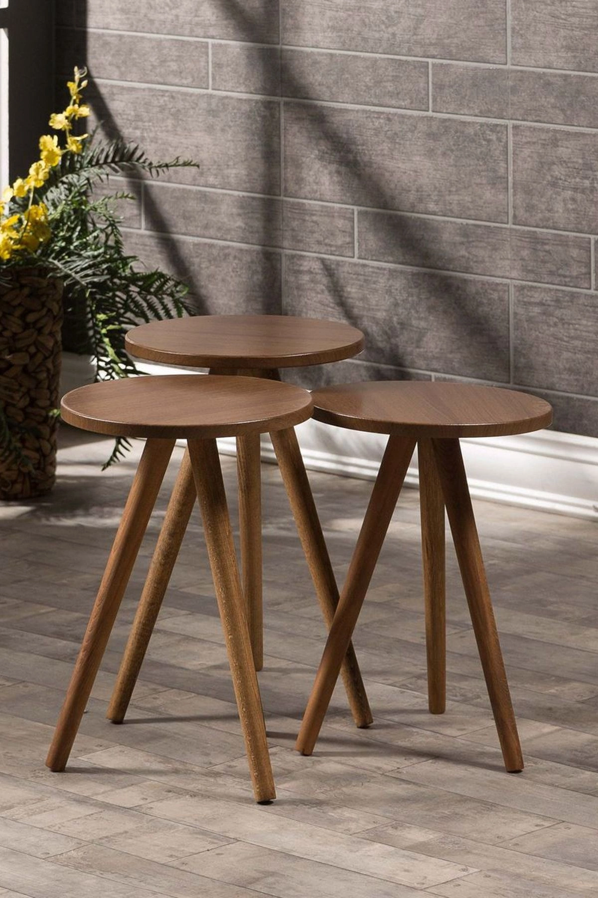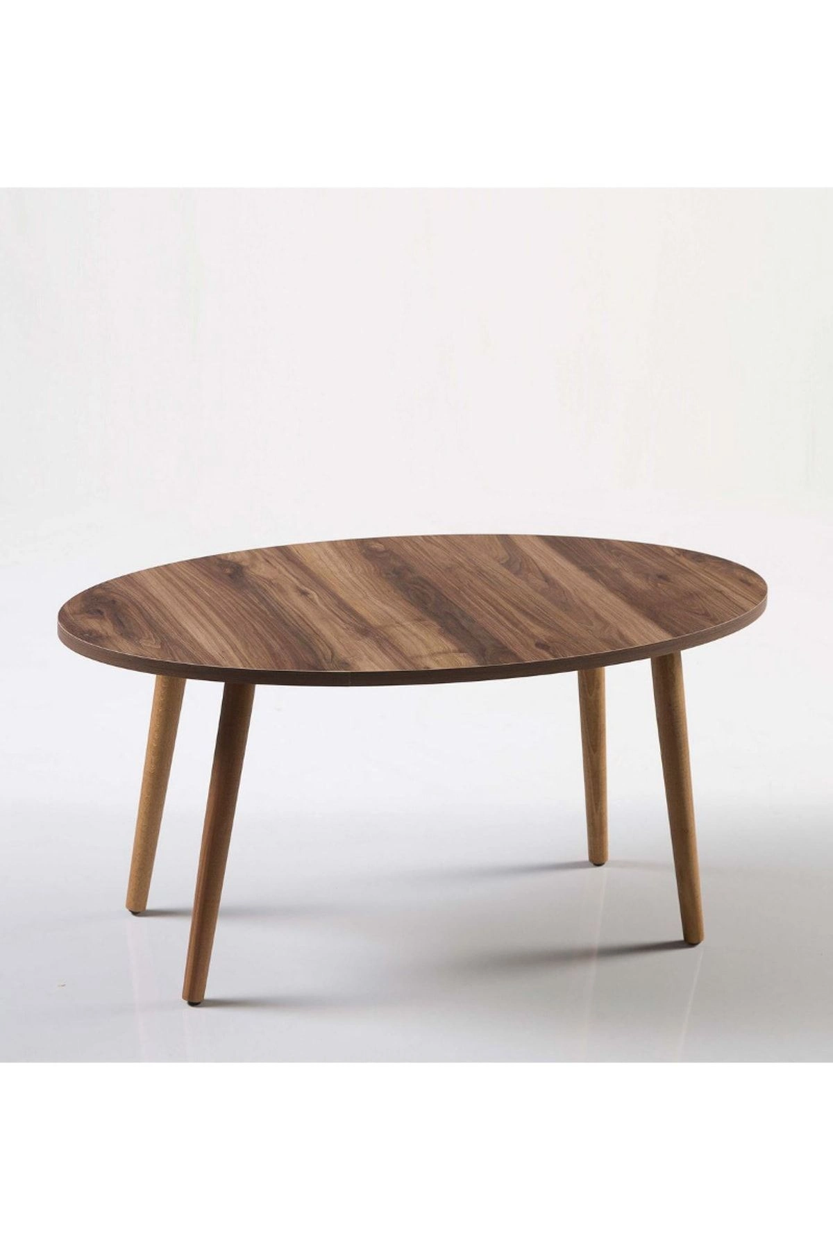 Zigon Sehpa Ve Orta Sehpa Set Ahşap Torna Elips Ceviz